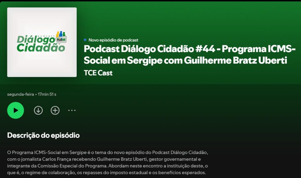 No início do mês de dezembro, a Comissão Especial do ICMS-Social foi convidada pelo Tribunal de Contas de Sergipe (TCE) para conceder entrevista sobre o Programa ICMS-Social no Podcast Diálogo Cidadão.